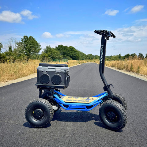 Verbessern Sie Ihre Fahrten mit dem Elektroroller mit unserem isolierten Roller-Kühler von Veehop , einem 3-in-1-Zubehör, das Aufbewahrung, Kühlung und Unterhaltung vereint.