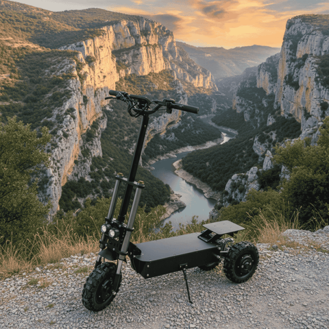 The F1 3-wheel electric scooter pushes the limits of off-roading thanks to its unique 3-wheel drive system . Designed to offer maximum grip and unparalleled stability , it allows you to choose between two driving modes: