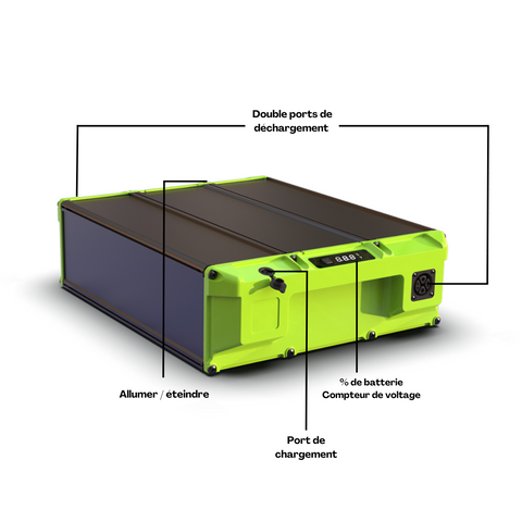 La batterie 60v40ah d'une Veehop est très puissante. Elle possède 2 ports de déchargement (pour les 4 roues motrices).